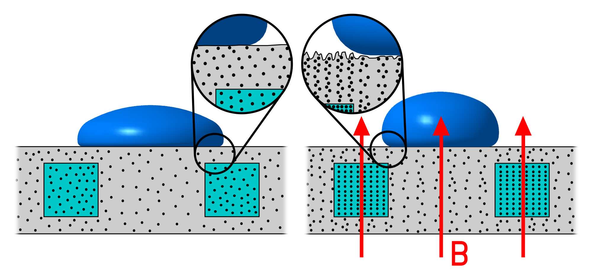 Hlavním cílem projektu je připravit pokročilé povrchy magnetoaktivních elastomerů mající nastavený počáteční charakter smáčení, který by bylo možné dále kontrolovaně měnit v přítomnosti vnějšího magnetického pole. Tímto by bylo možné například pro vodu na vzduchu modulovat původně superhydrofilní charakter na hydrofilní nebo hydrofobní na superhydrofobní. Obdobně by tomu bylo v případě oleofilních a oleofobních povrchů ve vodném prostředí.