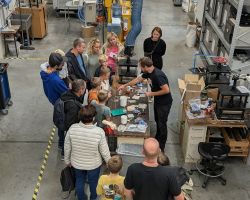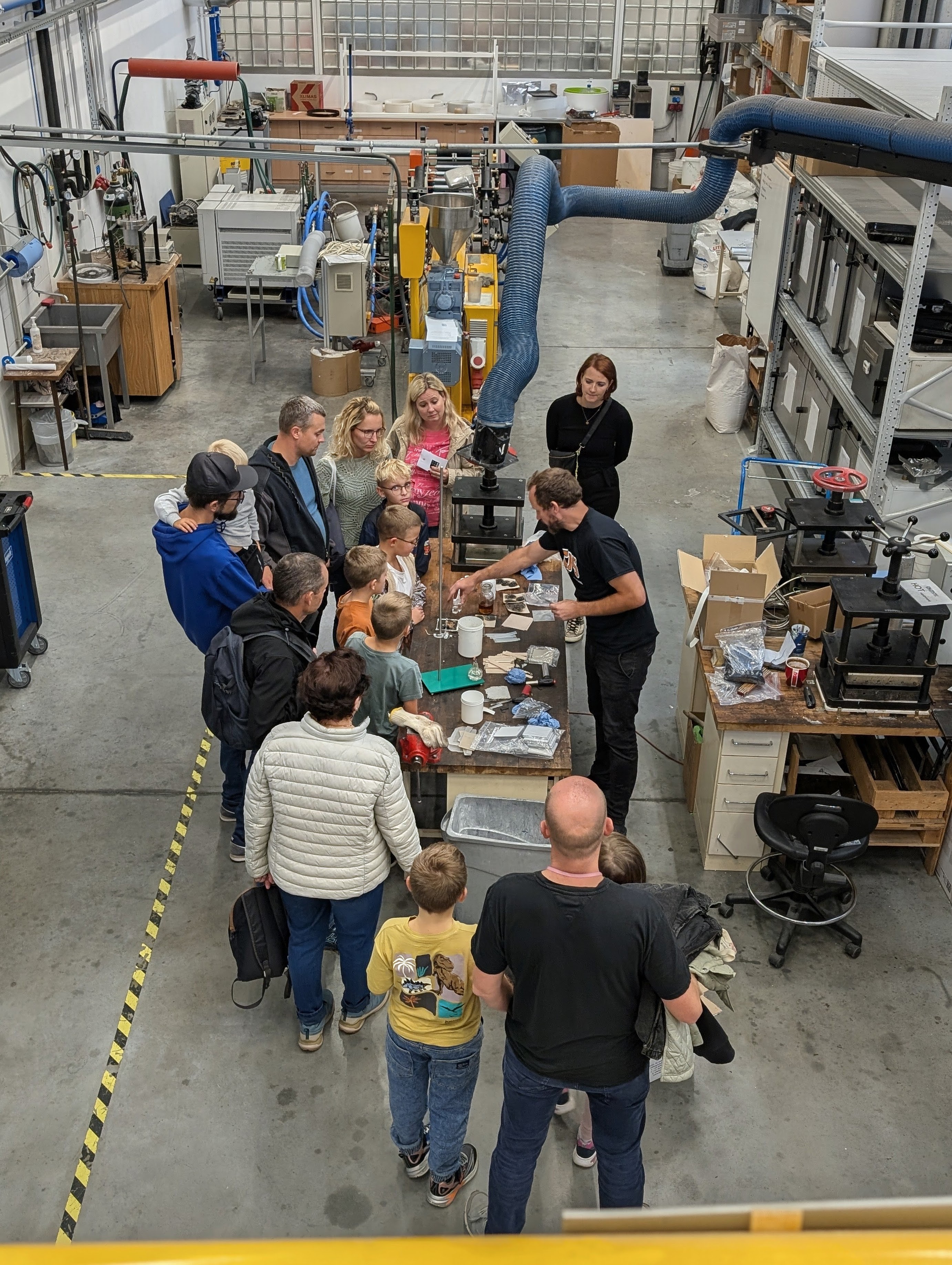 Throughout the evening, the Centre of Polymer Systems presented a diverse and interactive programme, highlighting the wide range of research topics pursued at the Centre. Through engaging expert explanations, hands-on workshops, and live demonstrations, the CPS team showcased the hidden wealth behind flame-retardant plastics, rubber and polymer processing, polymer recycling, nanofibre and hydrogel production, the composition of toys and everyday objects, as well as cell structures, sample preparation using laser cutting, and many other fascinating topics.
