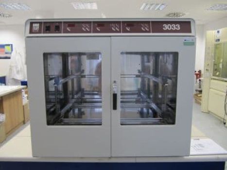 A device for a dynamic conditioning of samples at defined temperatures. Internal volume 150 L. Temperature range: room temperature +8 up to 70°C.Inner dimensions: 674x540x430 mm, Shaking frequency: 10-250 1/min.