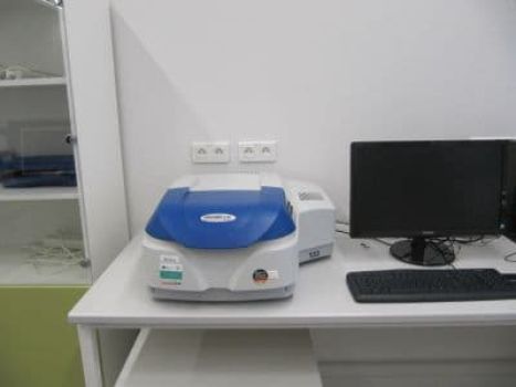 SPECORD 210 Plus (Analytik Jena AG) is a double beam UV-VIS spectrometer with a wavelength range of 190 nm to1100 nm. There are two sources of radiation: deuterium lamp for the UV range and tungsten-halogen lamp for the VIS region of wavelengths. Its photometric range is higher than 3A and photometric precision and repeatability is better than +/- 0.0005 A at the absorbance value of 1. The device contains an automatic double cell changer with 16 positions for cuvettes.