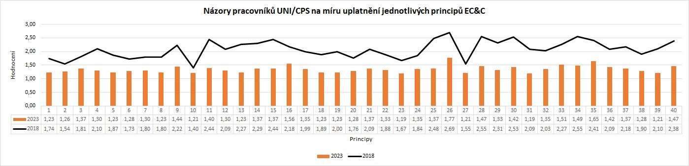 Legenda ke grafu Názory pracovníků UNI/CPS na míru uplatnění jednotlivých principů EC&C.
